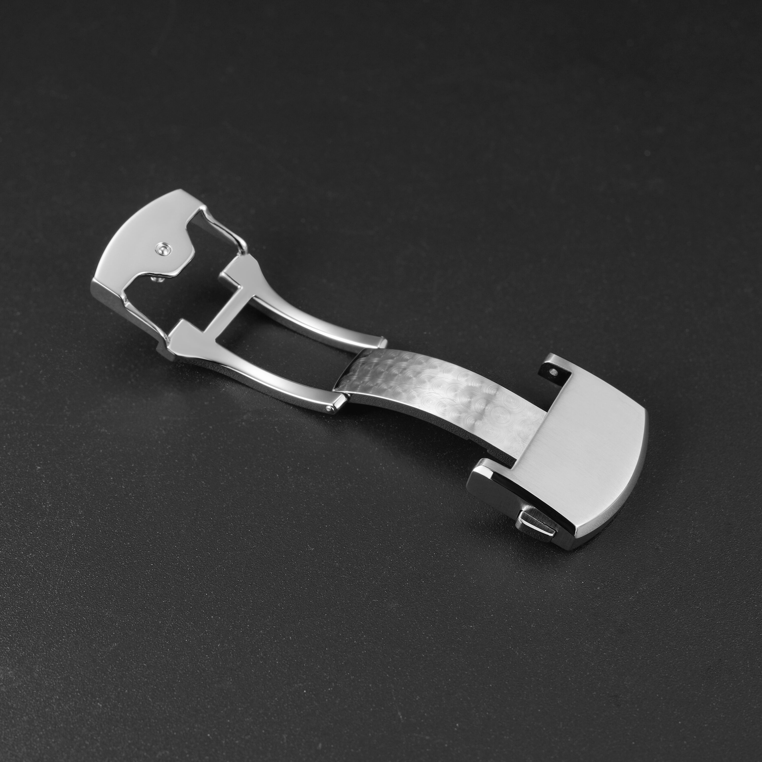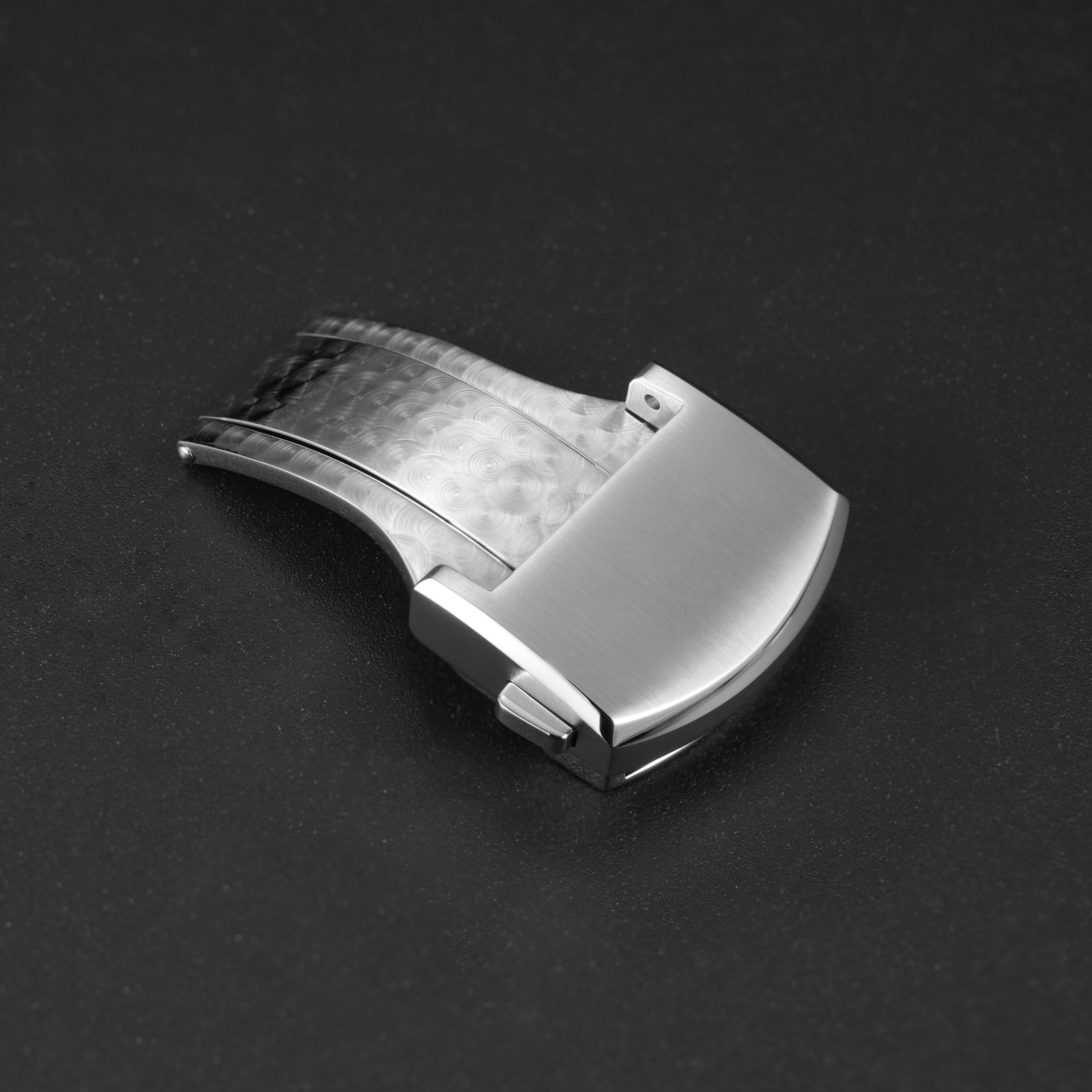 Made from 316L stainless steel, this deployment buckle combines exceptional durability with a seamless blend of security, comfort, and understated elegance. It is finished with a meticulous brushed treatment, reflecting unparalleled craftsmanship in every detail.